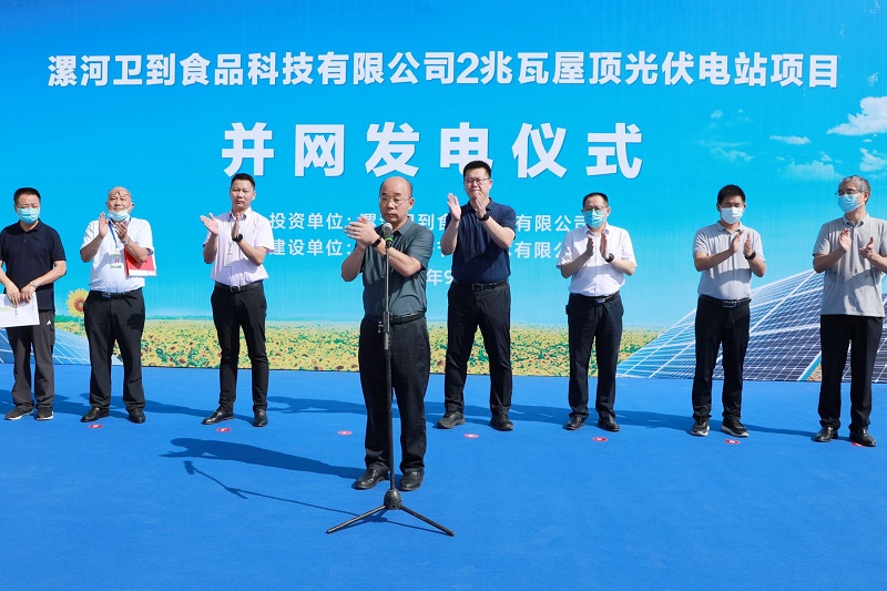 9月9日上午,pa视讯美味“2兆瓦屋顶光伏电站项目”成功并网发电,庆祝仪式在二期园区卫到厂隆重举行。市发改委副主任牛宪民,开发区党工委委员、管委会副主任孙波等市区相关部门负责人,pa视讯美味副总裁陈林,河南简好节能董事长杨伟功,以及来自利通液压、汇龙液压、景田、泓一食品等公司的企业家代表出席仪式。